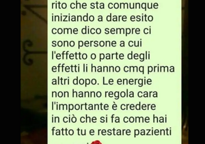 Io debbo solo scusarmi, perché non credevo a tutti i tuoi consigli sullo stare tranquilli e mi spazientivo, scusa scusa scusa! Come mi hai detto quando non avrei più avuto l'ossessione e la paura che non sarebbe andata ho avuto la sua chiamata, erano anni che aspettavo anni capisci Zaira?? E devo dire grazie al rituale fatto se ora sono con lui, mi chiama giornalmente e va avanti da tempo, mi hai fatto il regalo più bello, vorrei che tutti sapessero cosa sai fare, ti voglo bene, non sai quanto. Ti voglio chiedre mi sono dimenticata al telefono , ma io devo accendere qualche candela per far si che lui rimanga cosi' con me , ti prego rispondimi, io voglio che rimanga cosi' per sempre, grazie e scusa l'ossessione, un bacio. Ciao ti chiamo un attimo domani e vedo se hai tempo, grazie ancora! <3 <3 <3